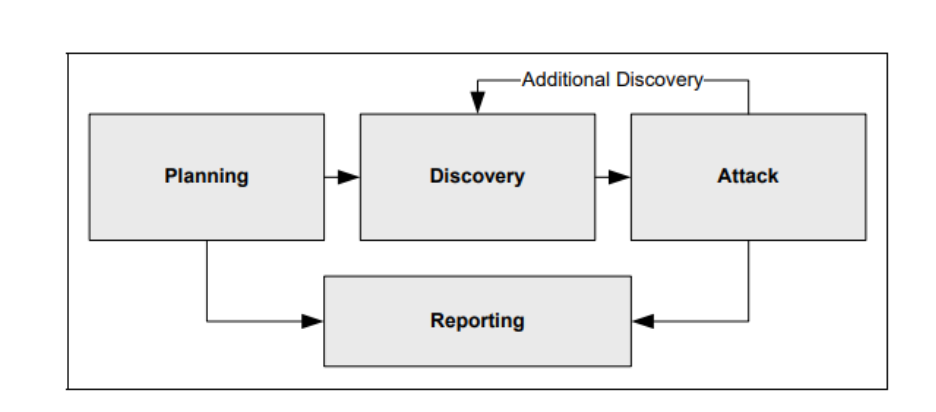 NIST outlines penetration testing as a structured, four-phase process consisting of planning, discovery, attack, and reporting. Unlike linear assessments, penetration testing is iterative: information uncovered during exploitation often feeds back into additional discovery activities, allowing testers to progressively expand access and refine risk evaluation [3].
